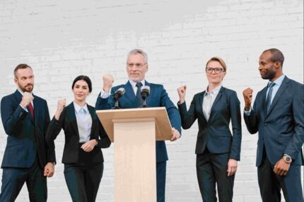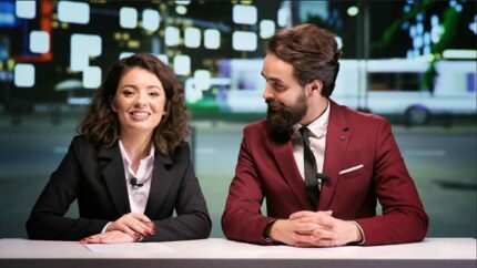 - Kamera karşısında veya topluluk önünde konuşan herkes
